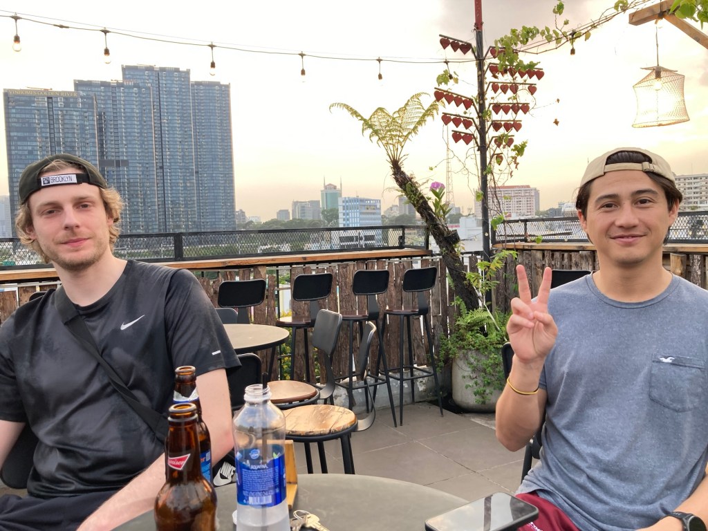 Après d’âpres négociations, Loan nous obtient deux whisky expresso sans whisky. Sur le rooftop, nous profitons du coucher de soleil seuls au milieu de la ville.