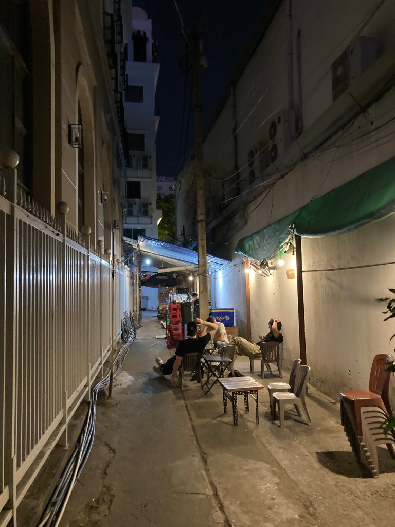 De notre côté, nous quittons Gavin (qui doit sentir le traquenard à 10km) pour aller boire des cocktails au Cocktail Evil 666. Un trajet en Grab avec du Roméo Elvis plus tard, nous arrivons dans une petite ruelle étroite entre deux buildings. Des petites chaises en plastiques, un préau avec des glacières et deux serveurs : aucun doute, il s’agit bien d’un bar (qui plus est, noté 4,9 / 5 sur Google).