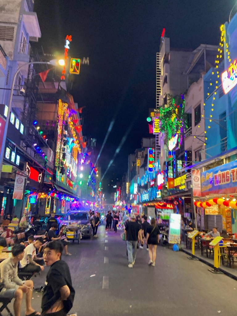 Pour la suite de la soirée, un Tony ressuscité nous retrouve avant de partir tous ensemble en direction de Bùi Viện, en n’oubliant pas au passage de bien s’alimenter avec un Bánh mì extra piquant et de bien s’hydrater avec du Soju (alcool de riz) extra dégoûtant.