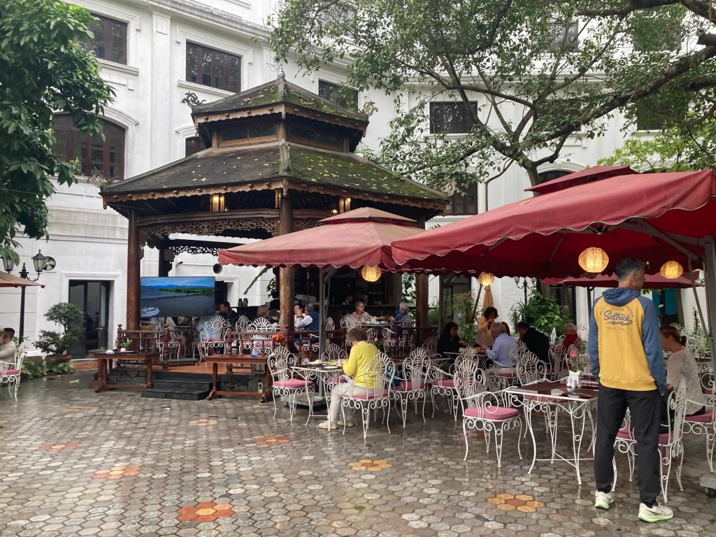 Dans cet hĂŽtel construit Ă lâĂ©poque coloniale, tous les clients sont occidentaux, la plupart retraitĂ©s, et les serveurs sont Viet, avec la tenue de rigueur. Cette scĂšne me rend un peu mal Ă lâaise.