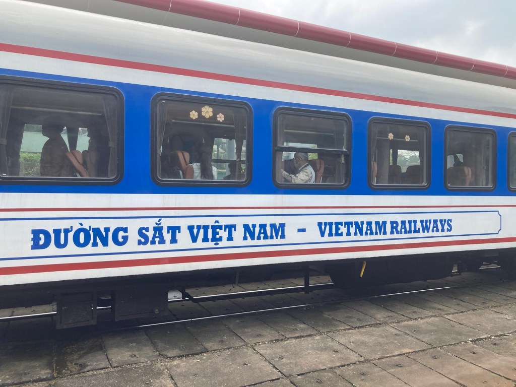 Finalement, le train arrive une demie heure avant le dĂ©part et nous embarquons, direction ÄĂ Náș”ng.