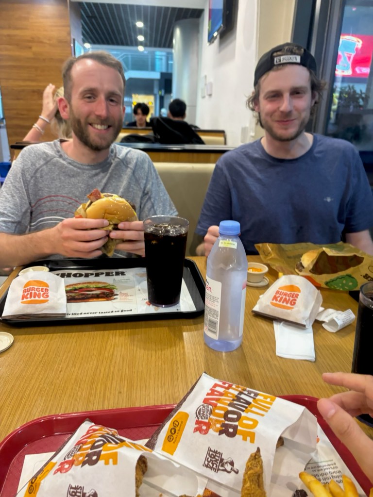 AprĂšs un petit tour aux toilettes, nous dĂ©cidons de manger ensemble avant le vol car ensuite ça sera la course pour aller jusquâĂ lâhĂŽtel et nous arriverons tard. Nous choisissons un restau faisant de la cuisine locale car nous nâavons pas traversĂ© la planĂšte pour manger des burgers, quand mĂȘme.